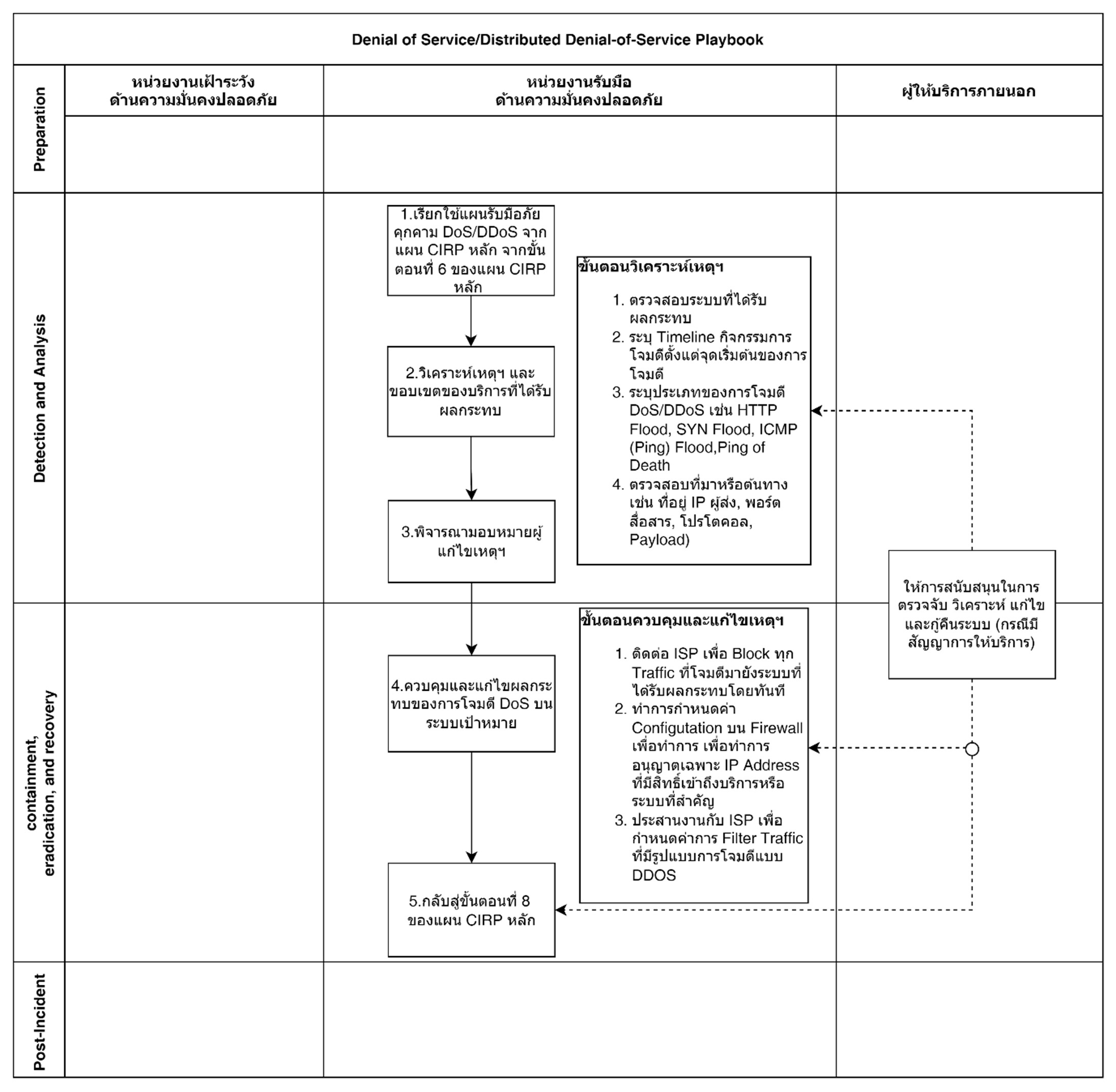 2. ขั้นตอนการรับมือภัยคุกคามแบบ Denial of Service/Distributed Denial-of-Service (DoS/DDoS Playbook)